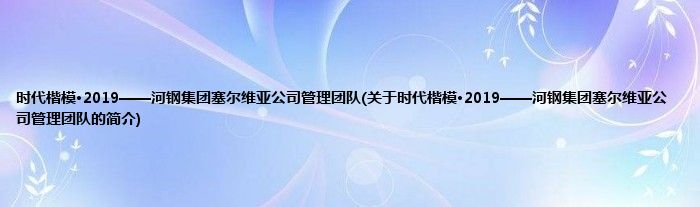本文关于时代楷模·2019——河钢集团塞尔维亚公司管理团队的简介就讲解完毕,希望对大家有所帮助。