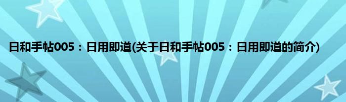 本文关于日和手帖005:日用即道的简介就讲解完毕,希望对大家有所帮助。