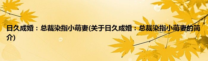 大家好,日久成婚:总裁染指小萌妻,关于日久成婚:总裁染指小萌妻的简介很多人还不知道,现在让我们一起来看看吧!