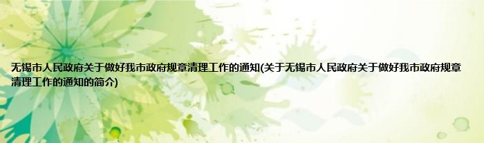 本文关于无锡市人民政府关于做好我市政府规章清理工作的通知的简介就讲解完毕,希望对大家有所帮助。