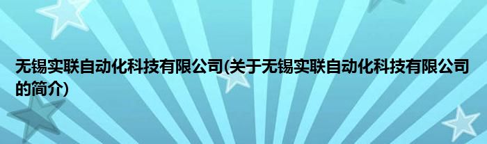 本文关于无锡实联自动化科技有限公司的简介就讲解完毕,希望对大家有所帮助。