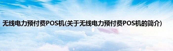 本文关于无线电力预付费POS机的简介就讲解完毕,希望对大家有所帮助。