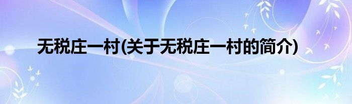本文关于无税庄一村的简介就讲解完毕,希望对大家有所帮助。