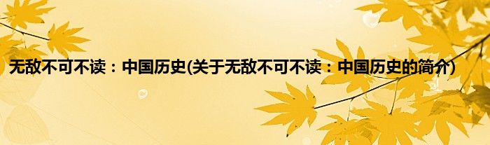本文关于无敌不可不读:中国历史的简介就讲解完毕,希望对大家有所帮助。