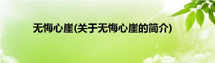 本文关于无悔心崖的简介就讲解完毕,希望对大家有所帮助。