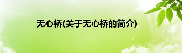 大家好,无心桥,关于无心桥的简介很多人还不知道,现在让我们一起来看看吧!