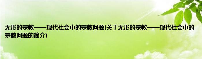 本文关于无形的宗教——现代社会中的宗教问题的简介就讲解完毕,希望对大家有所帮助。