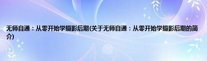本文关于无师自通:从零开始学摄影后期的简介就讲解完毕,希望对大家有所帮助。