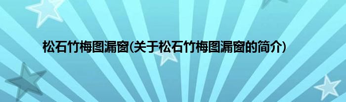 大家好,松石竹梅图漏窗,关于松石竹梅图漏窗的简介很多人还不知道,现在让我们一起来看看吧!