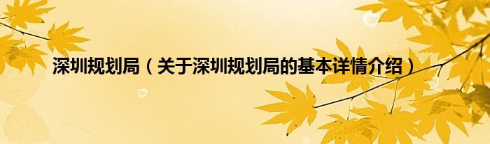 本文关于深圳规划局的基本详情介绍就讲解完毕,希望对大家有所帮助。