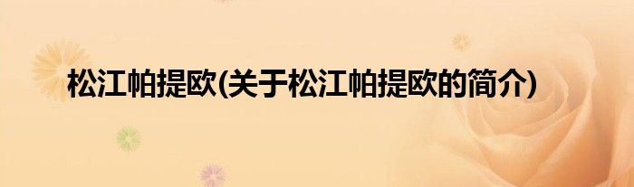 大家好,松江帕提欧,关于松江帕提欧的简介很多人还不知道,现在让我们一起来看看吧!
