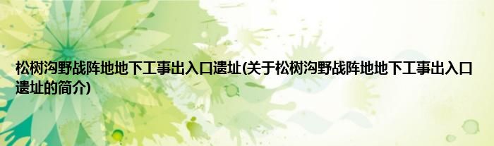 本文关于松树沟野战阵地地下工事出入口遗址的简介就讲解完毕,希望对大家有所帮助。