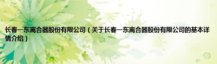 本文关于长春一东离合器股份有限公司的基本详情介绍就讲解完毕,希望对大家有所帮助。