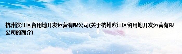 本文关于杭州滨江区留用地开发运营有限公司的简介就讲解完毕,希望对大家有所帮助。