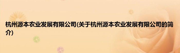 本文关于杭州源本农业发展有限公司的简介就讲解完毕,希望对大家有所帮助。