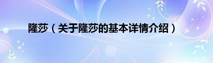 本文关于隆莎的基本详情介绍就讲解完毕,希望对大家有所帮助。