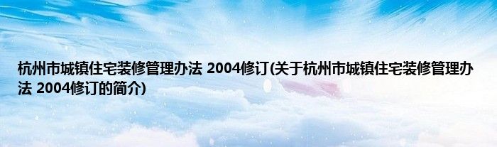 大家好,杭州市城镇住宅装修管理办法 2004修订,关于杭州市城镇住宅装修管理办法 2004修订的简介很多人还不知道,现在让我们一起来看看吧!