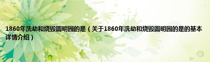 本文关于1860年洗劫和烧毁圆明园的是的基本详情介绍就讲解完毕,希望对大家有所帮助。