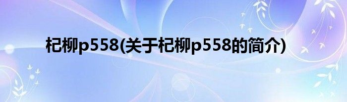 大家好,杞柳p558,关于杞柳p558的简介很多人还不知道,现在让我们一起来看看吧!