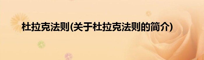 大家好,杜拉克法则,关于杜拉克法则的简介很多人还不知道,现在让我们一起来看看吧!
