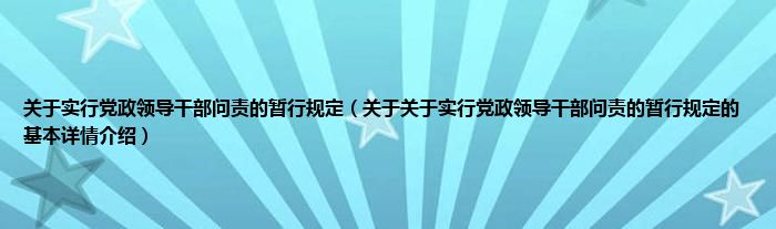 关于实行党政领导干部问责的暂行规定(关于关于实行党政领导干部问责的暂行规定的基本详情介绍)