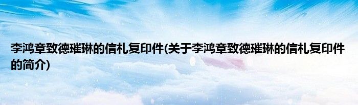 本文关于李鸿章致德璀琳的信札复印件的简介就讲解完毕,希望对大家有所帮助。