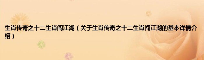 本文关于生肖传奇之十二生肖闯江湖的基本详情介绍就讲解完毕,希望对大家有所帮助。