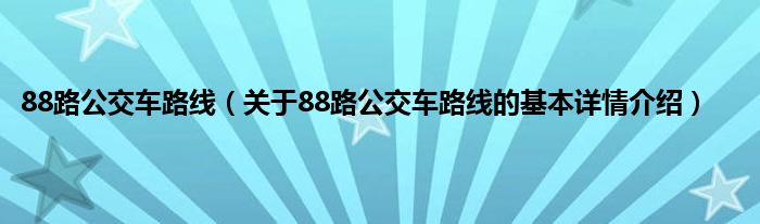 本文关于88路公交车路线的基本详情介绍就讲解完毕,希望对大家有所帮助。