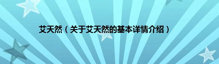 本文关于艾天然的基本详情介绍就讲解完毕,希望对大家有所帮助。