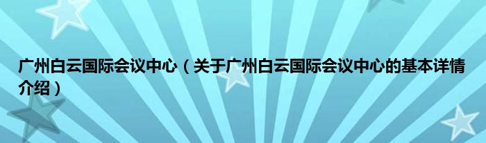 本文关于广州白云国际会议中心的基本详情介绍就讲解完毕,希望对大家有所帮助。