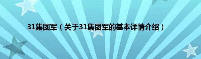 本文关于31集团军的基本详情介绍就讲解完毕,希望对大家有所帮助。