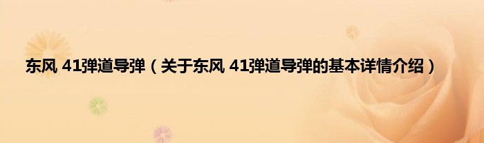 本文关于东风 41弹道导弹的基本详情介绍就讲解完毕,希望对大家有所帮助。