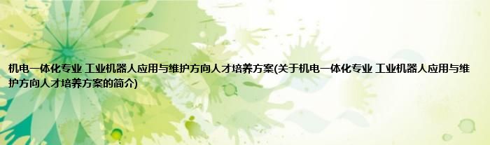 本文关于机电一体化专业 工业机器人应用与维护方向人才培养方案的简介就讲解完毕,希望对大家有所帮助。