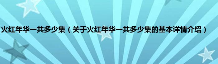 本文关于火红年华一共多少集的基本详情介绍就讲解完毕,希望对大家有所帮助。