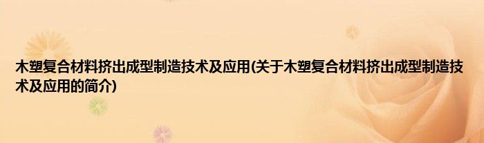 本文关于木塑复合材料挤出成型制造技术及应用的简介就讲解完毕,希望对大家有所帮助。
