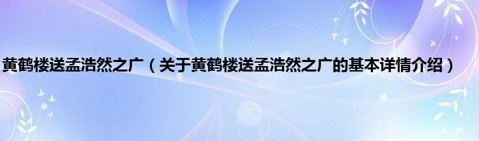 本文关于黄鹤楼送孟浩然之广的基本详情介绍就讲解完毕,希望对大家有所帮助。