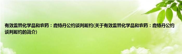 大家好,有效监管化学品和农药:鹿特丹公约谈判履约,关于有效监管化学品和农药:鹿特丹公约谈判履约的简介很多人还不知道,现在让我们一起来看看吧!