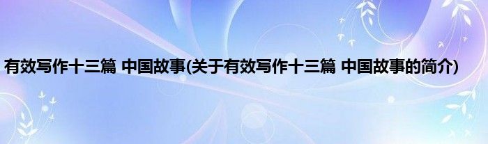 本文关于有效写作十三篇 中国故事的简介就讲解完毕,希望对大家有所帮助。