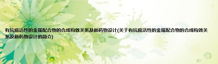 本文关于有抗癌活性的金属配合物的合成构效关系及新药物设计的简介就讲解完毕,希望对大家有所帮助。