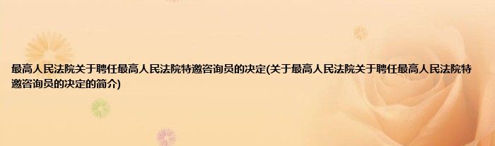 大家好,最高人民法院关于聘任最高人民法院特邀咨询员的决定,关于最高人民法院关于聘任最高人民法院特邀咨询员的决定的简介很多人还不知道,现在让我们一起来看看吧!