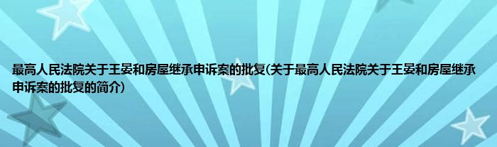 大家好,最高人民法院关于王晏和房屋继承申诉案的批复,关于最高人民法院关于王晏和房屋继承申诉案的批复的简介很多人还不知道,现在让我们一起来看看吧!