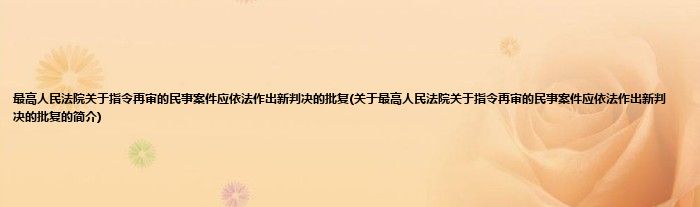大家好,最高人民法院关于指令再审的民事案件应依法作出新判决的批复,关于最高人民法院关于指令再审的民事案件应依法作出新判决的批复的简介很多人还不知道,现在让我们一起来看看吧!