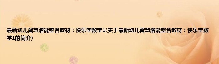 大家好,最新幼儿智慧潜能整合教材:快乐学数学1,关于最新幼儿智慧潜能整合教材:快乐学数学1的简介很多人还不知道,现在让我们一起来看看吧!