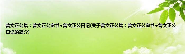 本文关于曾文正公集:曾文正公家书+曾文正公日记的简介就讲解完毕,希望对大家有所帮助。