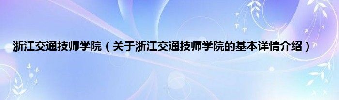 本文关于浙江交通技师学院的基本详情介绍就讲解完毕,希望对大家有所帮助。