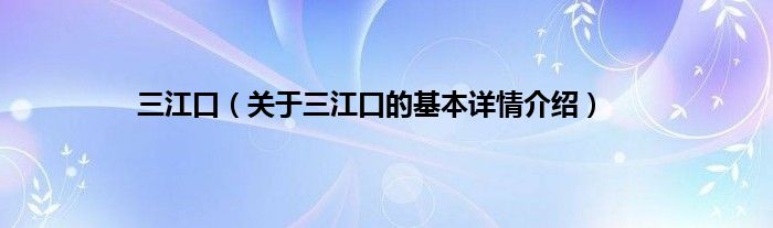 本文关于三江口的基本详情介绍就讲解完毕,希望对大家有所帮助。