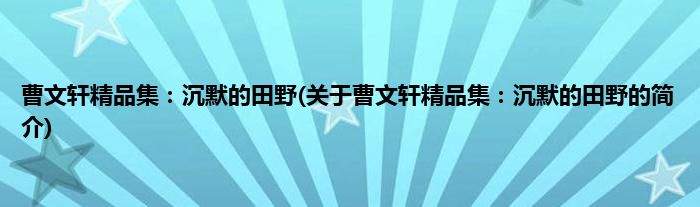 本文关于曹文轩精品集:沉默的田野的简介就讲解完毕,希望对大家有所帮助。