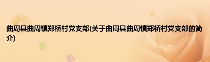 本文关于曲周县曲周镇郑桥村党支部的简介就讲解完毕,希望对大家有所帮助。
