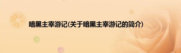 1、 《暗黑主宰游记》是连载中的一部动漫穿越类网络小说,作者是周府。