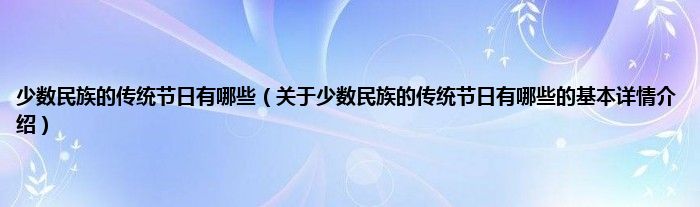 本文关于少数民族的传统节日有哪些的基本详情介绍就讲解完毕,希望对大家有所帮助。